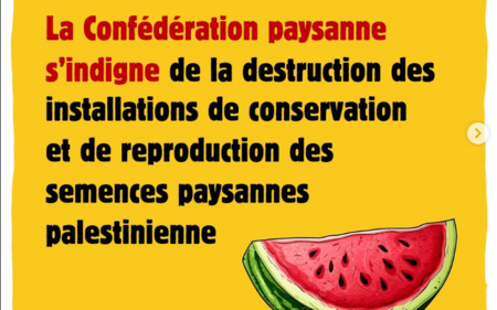 Jeudi 7 août 2025La Confédération Paysanne condamne avec la plus grande fermeté l’attaque militaire menée le jeudi 31 juillet par les forces d’occupation israéliennes contre la banque de (…)